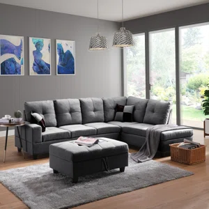 Right Chaise Living Room Sofa Set With Storage Ottoman